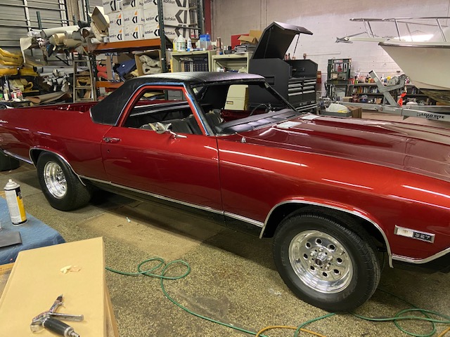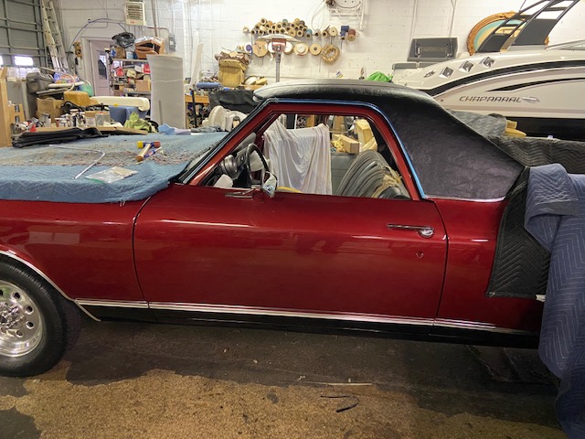 Gallery II Vinyl Roof on a ’68 El Camino Boat work Other Projects We Also do Hydro Dipping! Hydro Dip on a Subaru Candy Red Carbon Fiber